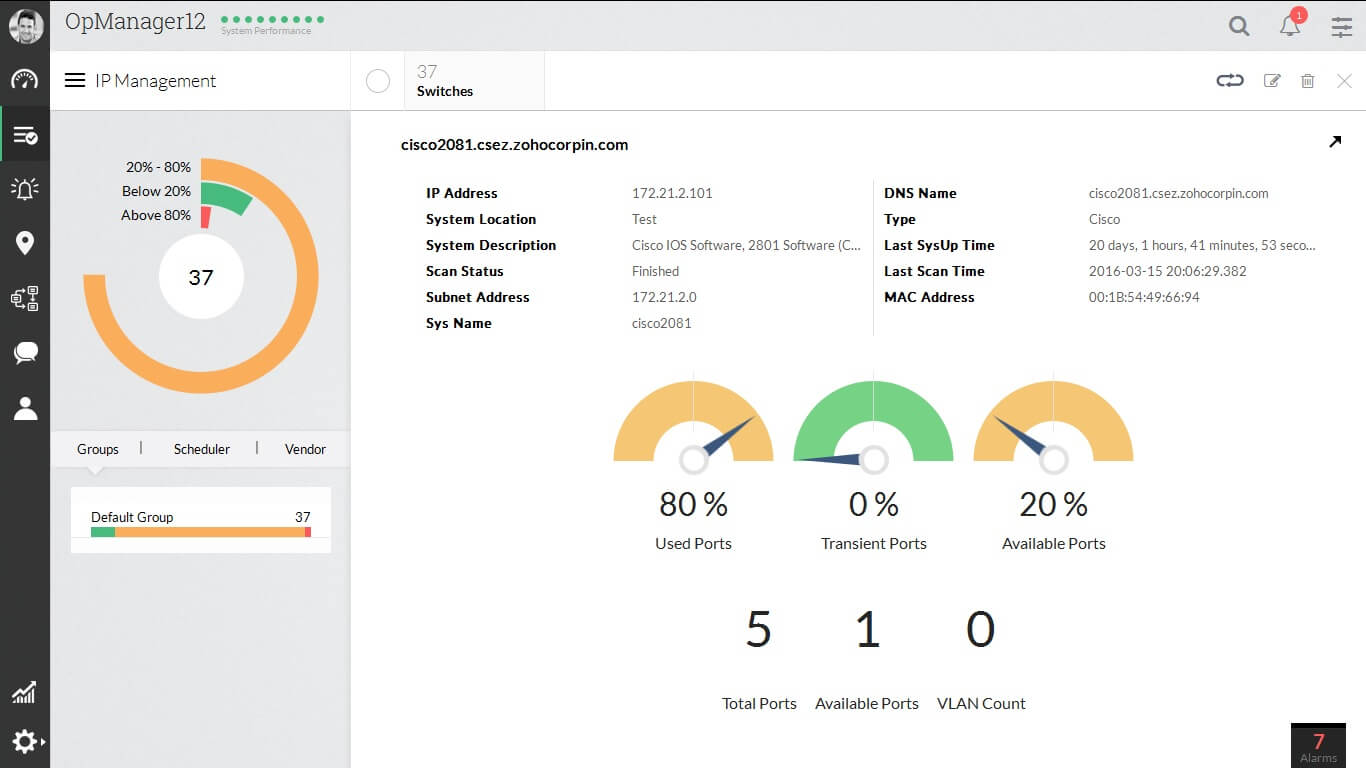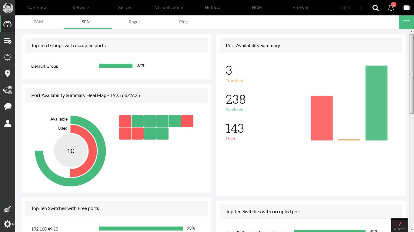 ネットワーク統合監視ツール「OpManager」では、ネットワーク全体の監視に加えて、1つのコンソールからIPアドレス管理とスイッチポートマッピングを効率的に管理できます。以下のような分かりやすい管理画面で、簡単に導入、運用することができます。