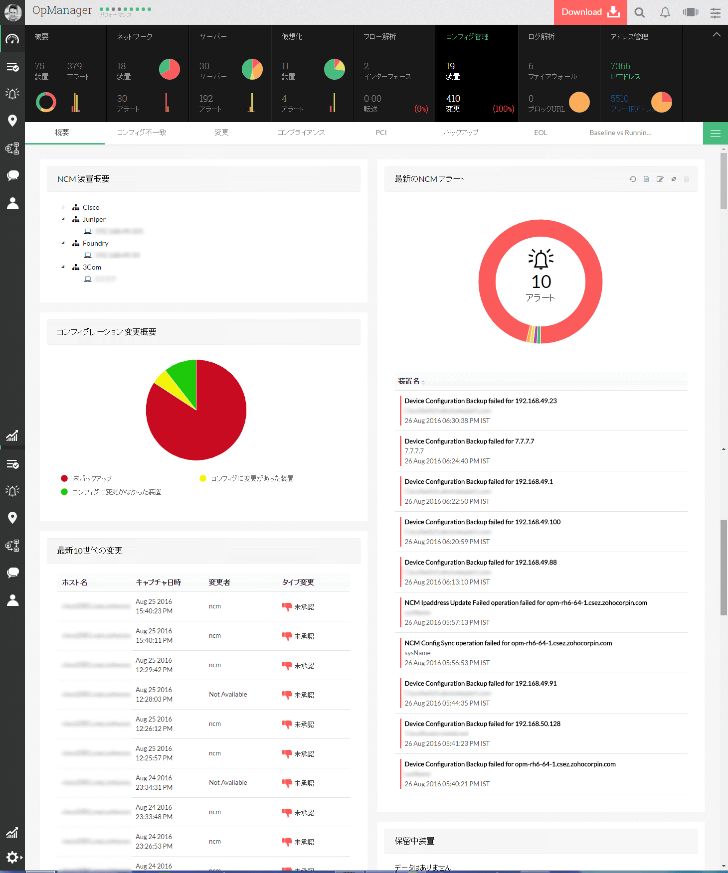 NCMオプションは、ManageEngine製品のひとつNetwork Configuration Managerと同じ機能を提供します。