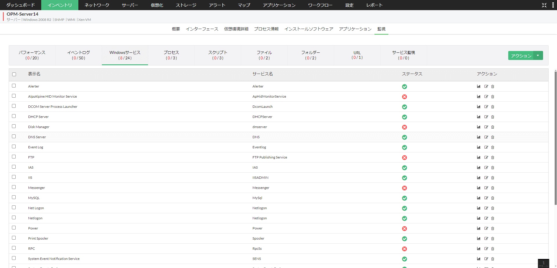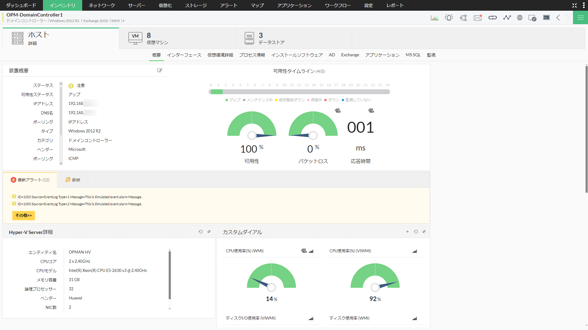 - SNMP、WMI、Telnet、SSHによりWindows Server・Linux・Unixなどマルチベンダーサーバー可用性の情報を簡単取得