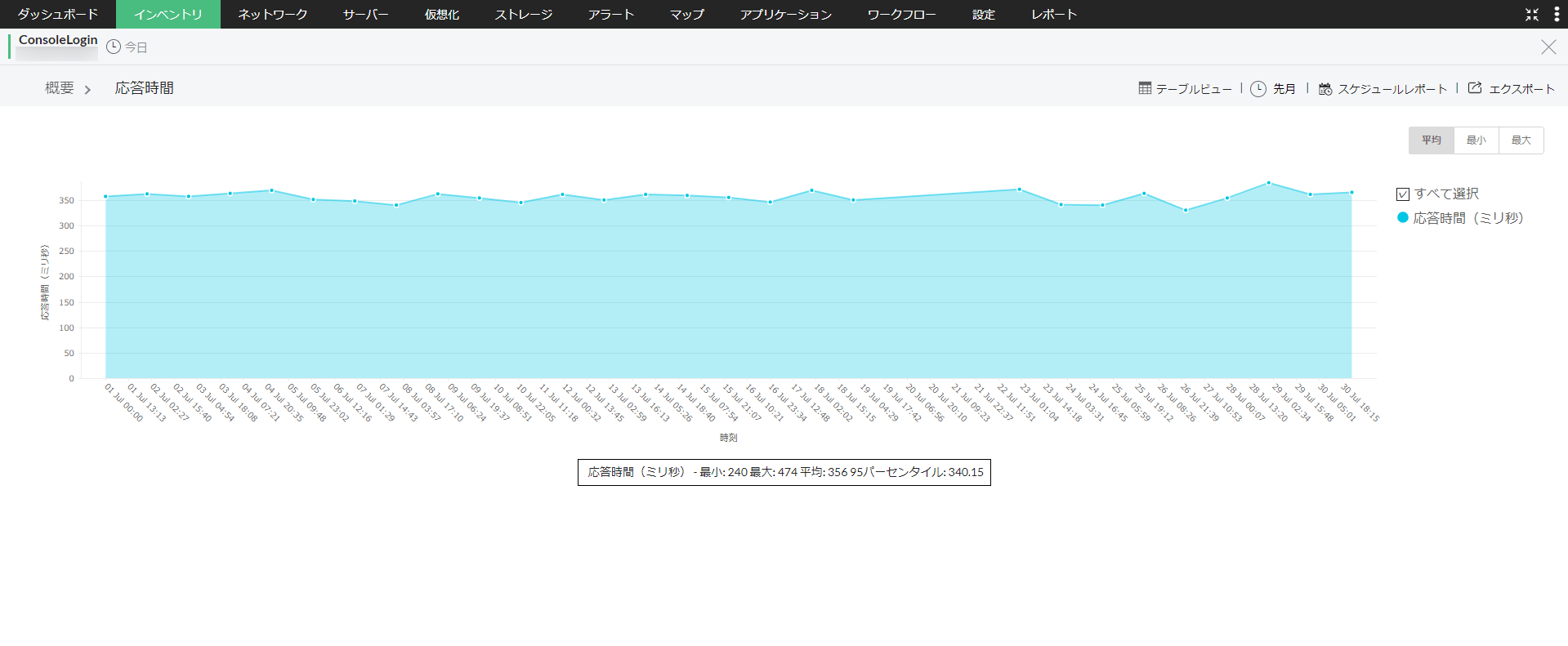 サーバーに障害が発生した場合にはすぐに検知して管理者に通知します。サーバー管理者は、洗練された操作しやすいUI上から、リアルタイムにサーバーの可用性や性能を把握し、ワンクリックでグラフやレポートを出力することができます。