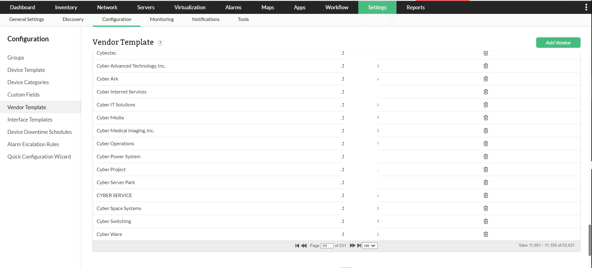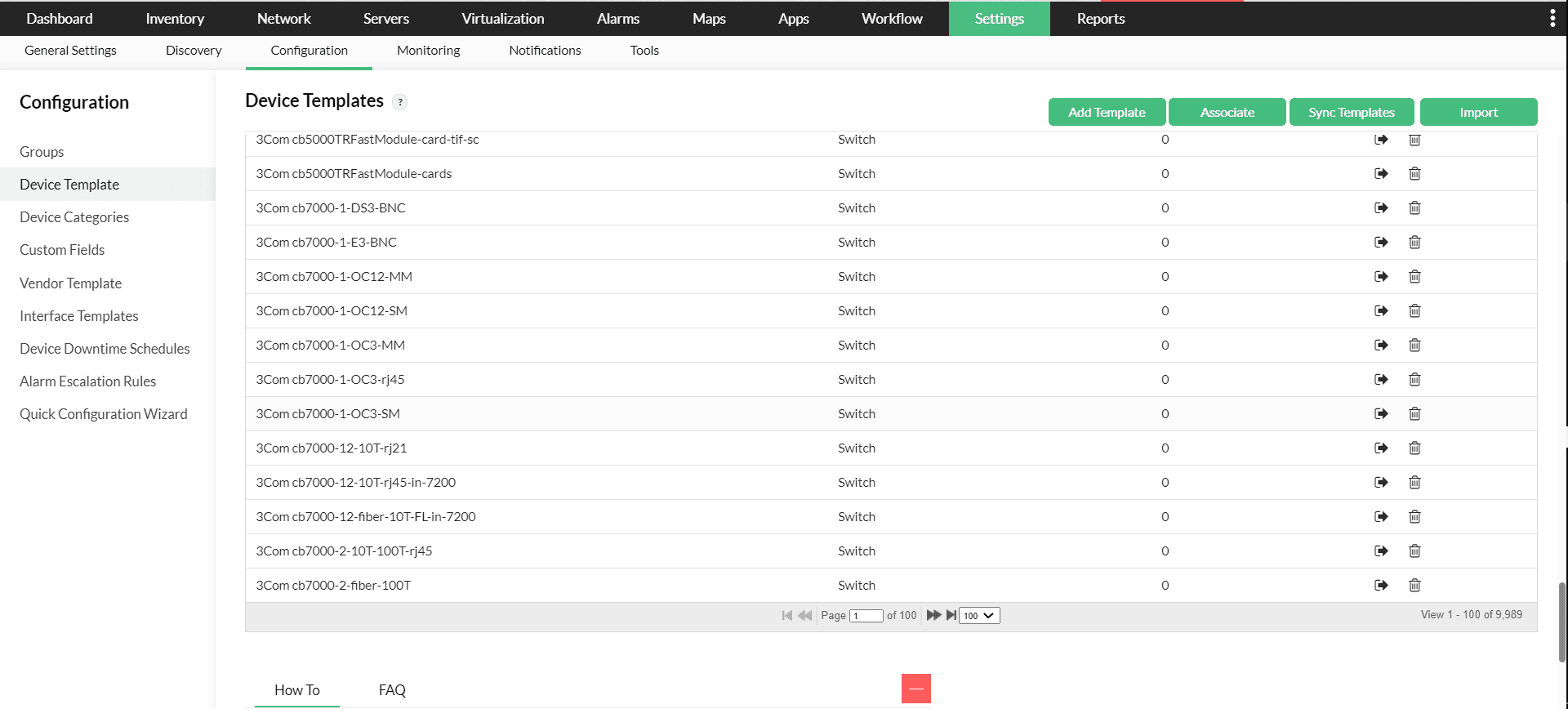 ・テンプレート:大規模ネットワーク内のあらゆる装置のしきい値を構成・設定する作業は、多くの時間と人的リソースを要する非常に手間のかかるプロセスです。このプロセスを簡素化するために、OpManagerには装置固有のテンプレートとベンダー固有のテンプレートが用意されています。テンプレートは、特定の種類の装置/ベンダー向けの一連の定義済み監視項目で構成されています。OpManagerには、大規模ネットワークの監視を容易にする11,000種類以上の装置テンプレートが用意されています。これらのテンプレートは要件に合わせてカスタマイズすることも可能です。