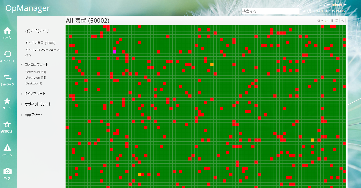 仮想化、クラウドなど、複雑さと規模を増すICT環境の監視に耐えうるべく、データベースに格納された機器ステータスなどのデータの読み込み速度を向上させています。 新しいインターフェース上では、障害のポップアップ表示などで迅速な障害対応を促します。その他、1つの画面上に全ての機器の死活情報を表示するヒートマップ機能も利用できます。 本リリースより、スナップショットダイヤルを2種類から選択する機能や、キーボードショートカット機能を利用できます。なお、継続して旧ユーザーインターフェースも利用でき、随時インターフェースを切り替えられます。