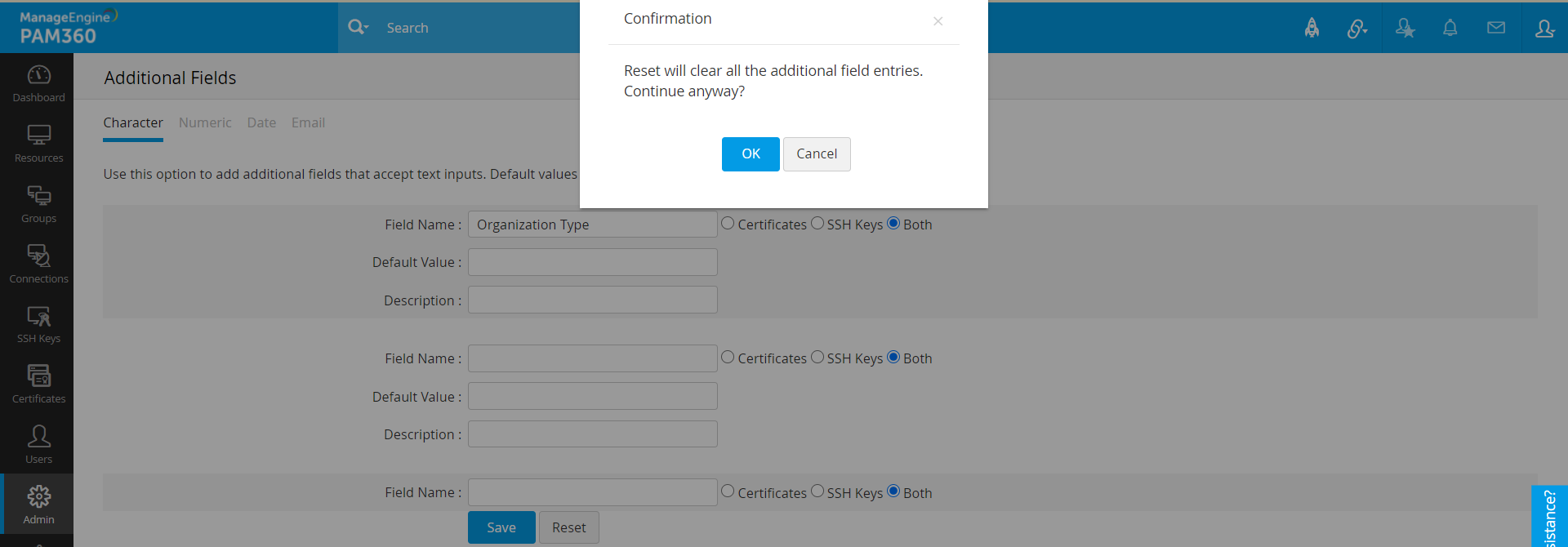 PAM360の追加フィールドを使って、リポジトリに保存されたキーと証明書についての他の情報を添付します。