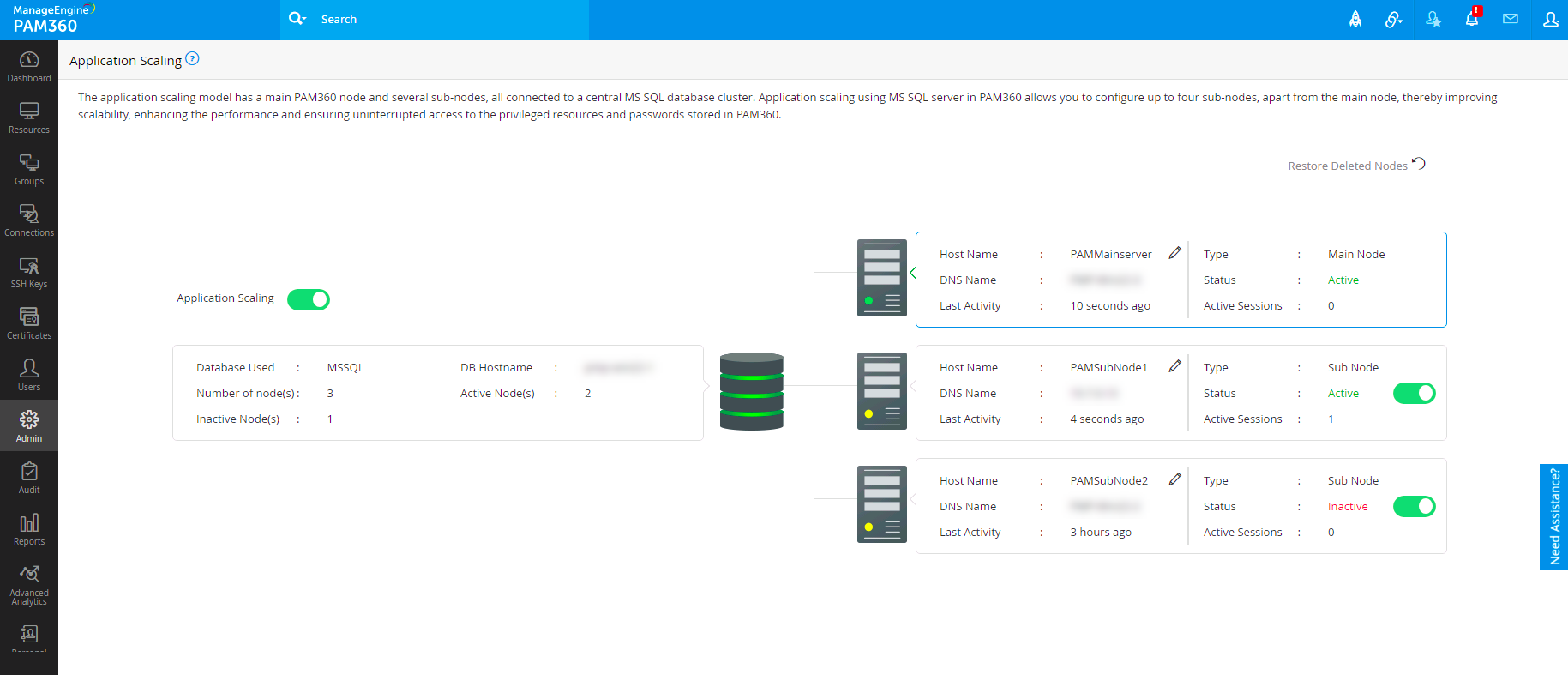 メモ:PAM360のアプリケーションスケーリングは現在、MS-SQLデータベースクラスタのみで作動します。