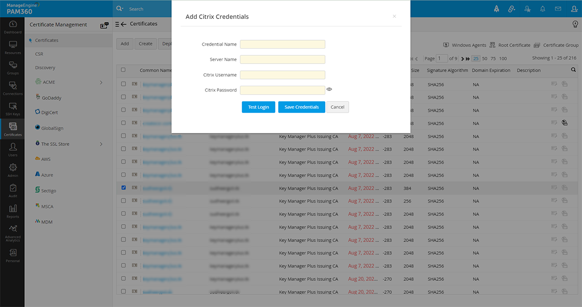 - 表示されるポップアップで、クリックして追加し、認証情報名、サーバー名、Citrixユーザー名およびCitrixパスワードを記載します。