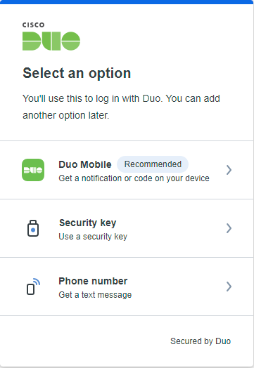 - 前の手順でDuo Securityを認証の第二要素として確認すると、新しいウインドウで二要素認証の実行が必要なユーザーを選択するようプロンプト要求されます。