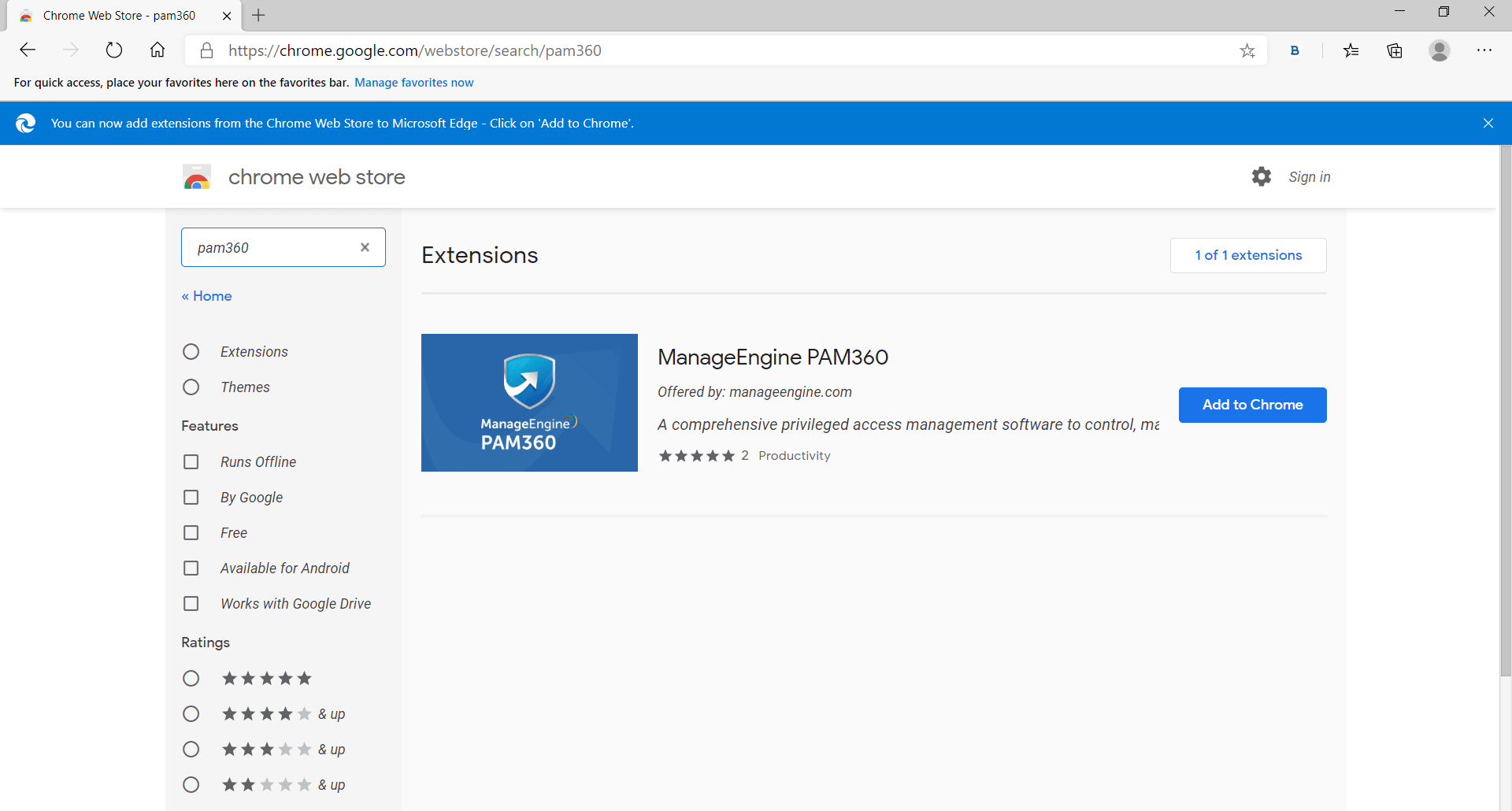 - Chrome Web Storeに進み、PAM360.を検索します。