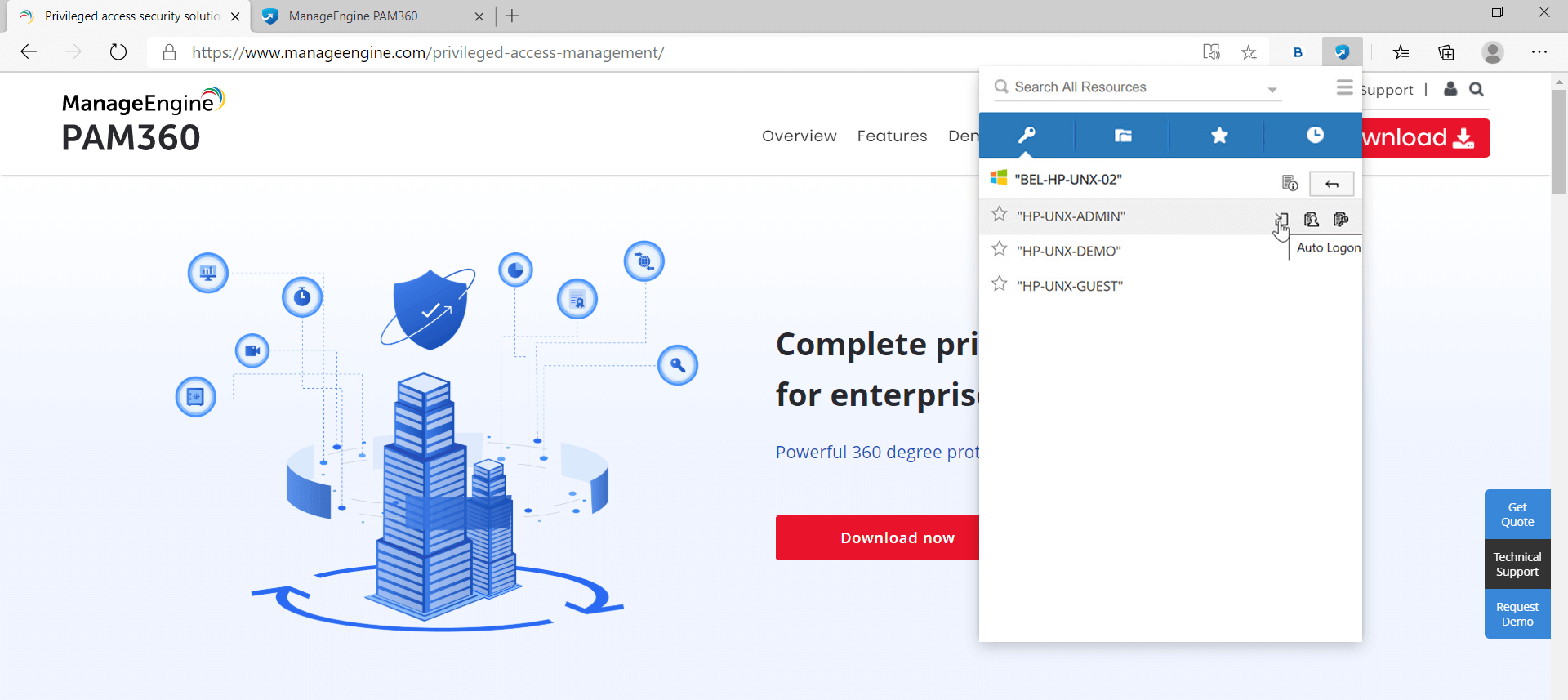 - PAM360 Webインターフェイスへのアクセス不要で、ブラウザからWebサイトとアプリケーションに自動ログイン。
