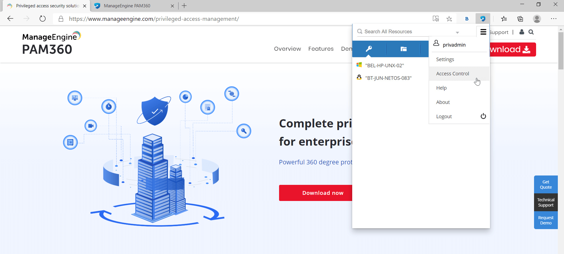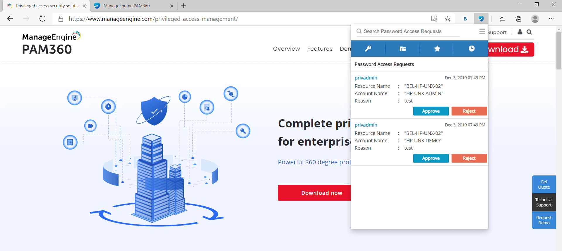 ブラウザ拡張機能が一度展開されると、背景で稼働しているPAM360で、特権アクセスパスワード管理アクティビティのほとんどを直接実行することができます。
