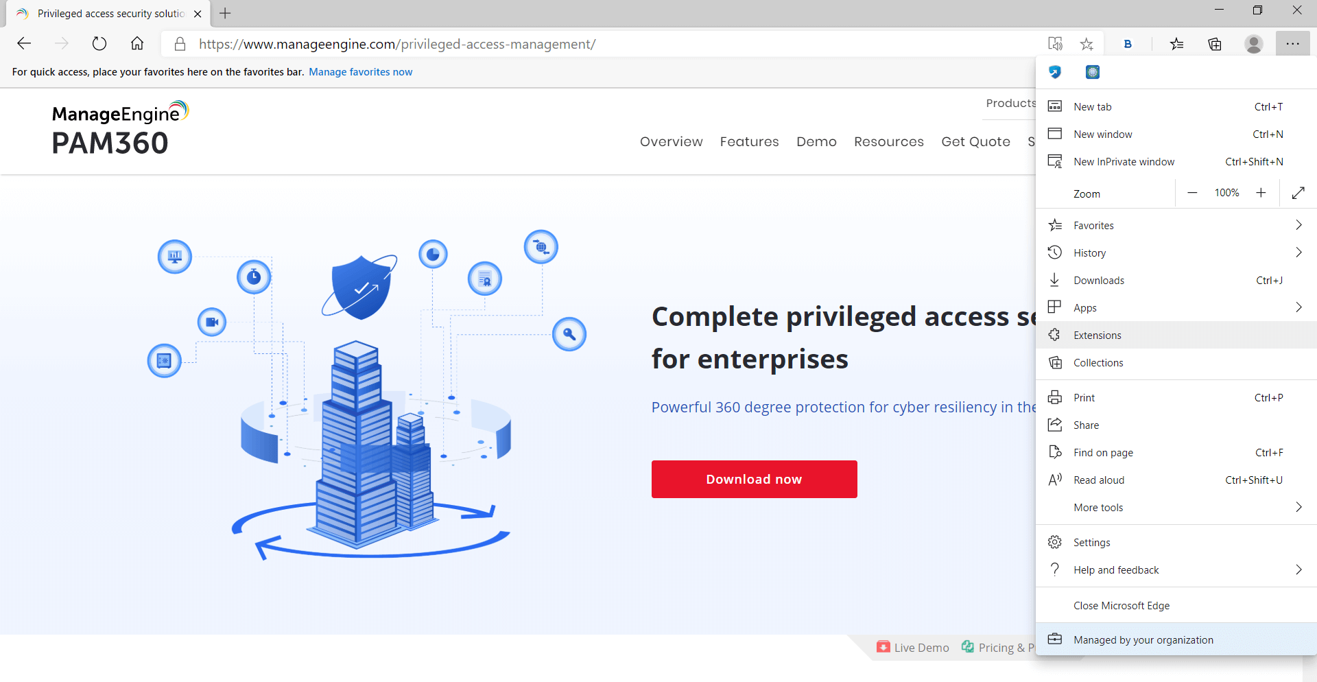 - インストール後、PAM360アイコンがブラウザのアドレスバーに表示されます。