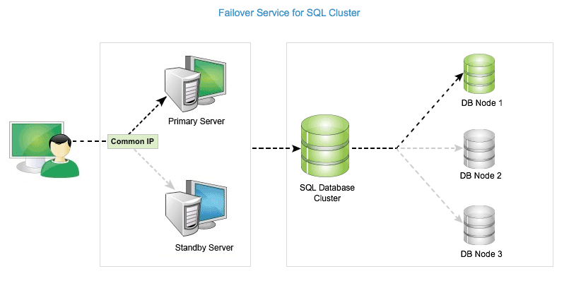 PAM360のフェールオーバーサービスは、パスワードおよびその他の特権リソースに中断することなくアクセスできるようにすることも目的としています。PAM360の「高可用性」機能には2つの個別データベースインスタンスがPAM360のプライマリとセカンダリサーバーのそれぞれにマッピングされている必要がありますが、「フェールオーバー」が、共通のMS-SQLクラスタにアクセスし、また、複数のPAM360データベースインスタンスがそこにバインドされている、冗長PAM360 Serverインスタンスで機能します。