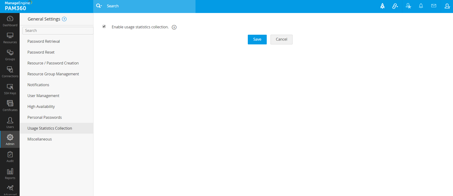 ユーザーがPAM360で製品広告バナーやメッセージを表示しないようにするには、このオプションを有効にします。
