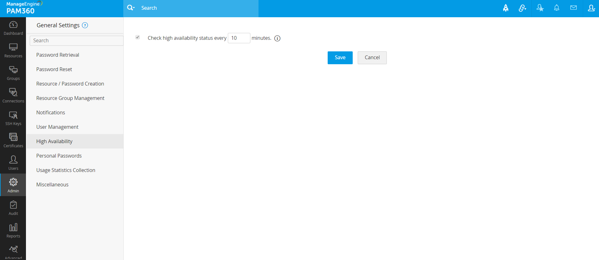 PAM360の高可用性の定期的なステータスチェックを構成するには: