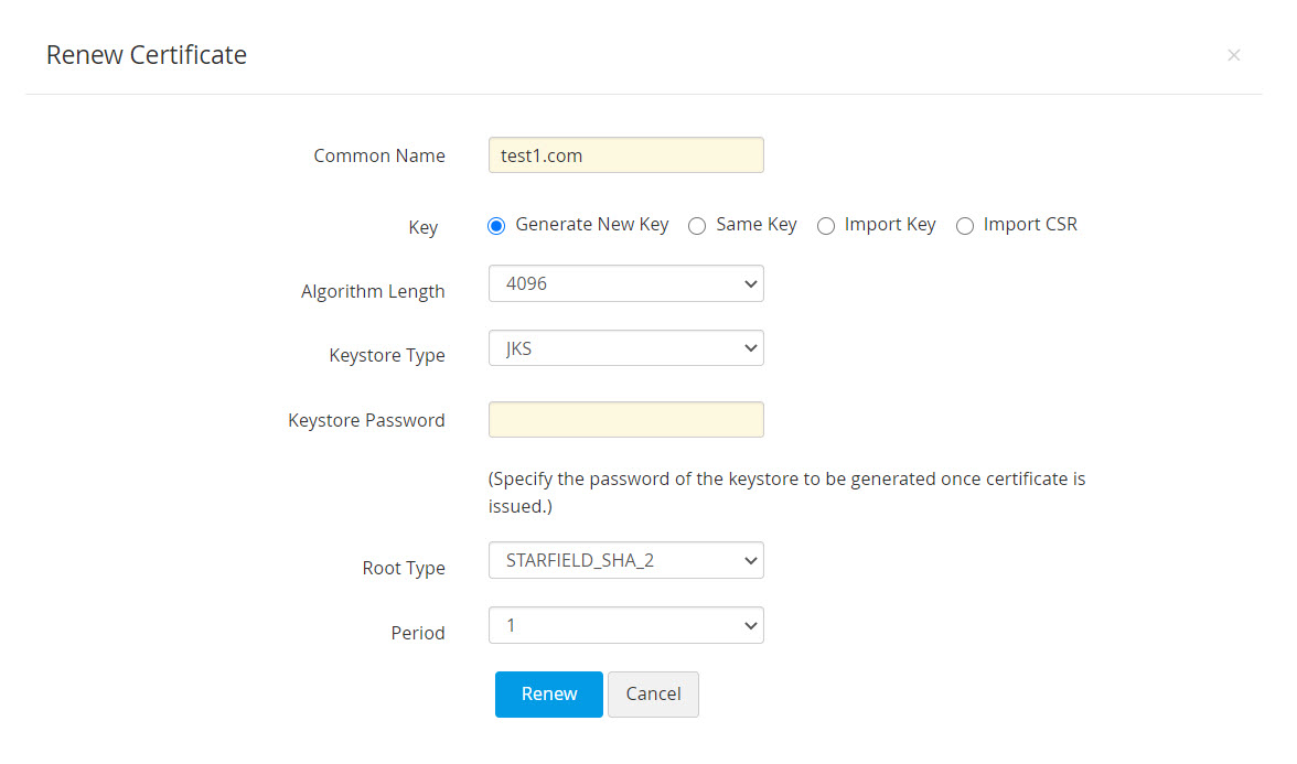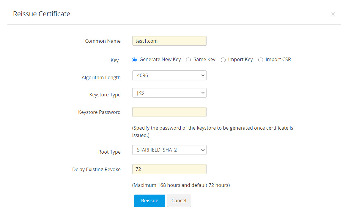 PAM360から、証明書の再発行を更新、取り消し、要求、および証明書オーダーをキャンセルすることができます。