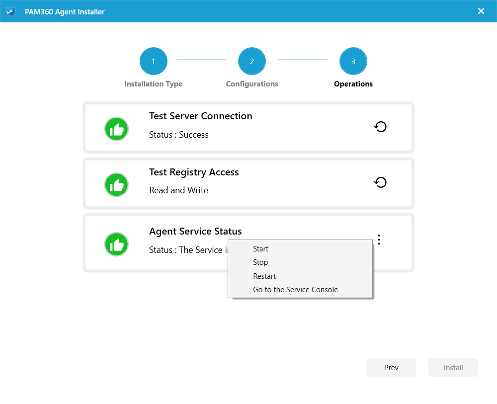 - 各操作時、Windowsエージェントがインストールされ、PAM360エージェントサービスが自動的に起動します。