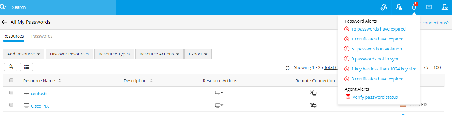 エージェントをターゲットマシンで初めて起動すると、マシンがPAM360でリソースとして自動追加され、ローカルアカウントが自動検出されます。検出後、ローカルアカウントのパスワードをリセットできます。PAM360エージェント使ったパスワードのリセットについての詳細は、ここをクリックしてください。