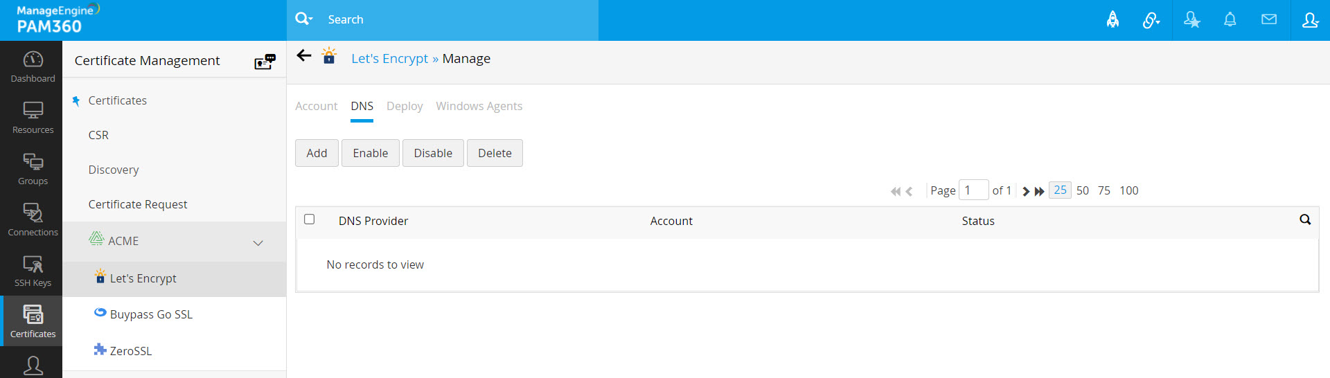 次に、PAM360インターフェイスで、下の手順にしたがって、ClouDNSをLet's Encrypt CAに追加します: