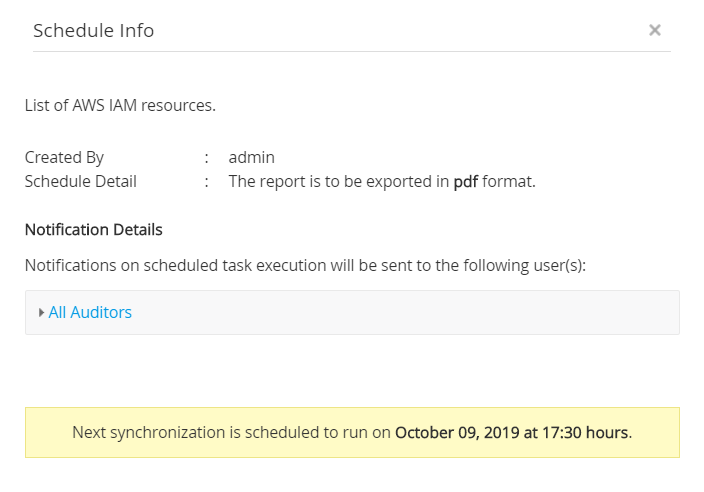 - これで、スケジュール説明、スケジュールタイプ、ユーザー名、スケジュールオーナー、通知詳細および次回スケジュール時間等、スケジュール詳細を表示できます。