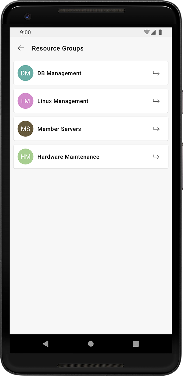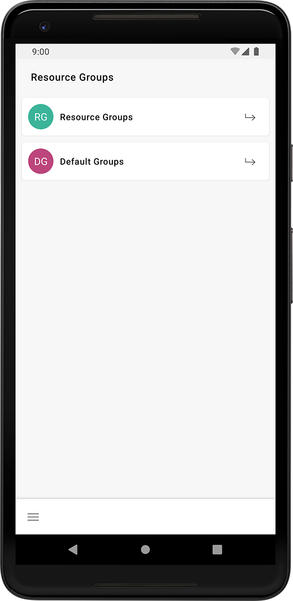 ナビゲーションメニューのリソースグループオプションをタップし、あなたが所有または管理するすべてのリソースグループを表示します。リソースグループにサブグループがある場合、右矢印アイコンで示されます。サブグループを表示するには、[矢印]アイコンをタップするだけです。リソースグループ内にリソースを表示する場合は、必要なリソースグループの名前をタップします。同様に、リソースグループ内のリソース名をタップし、選択したリソースに属するアカウントを表示、アカウント名をタップしてアカウント詳細を表示します。