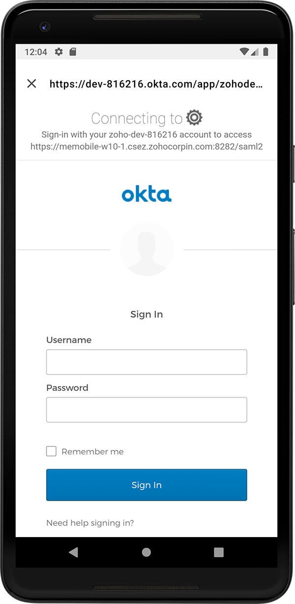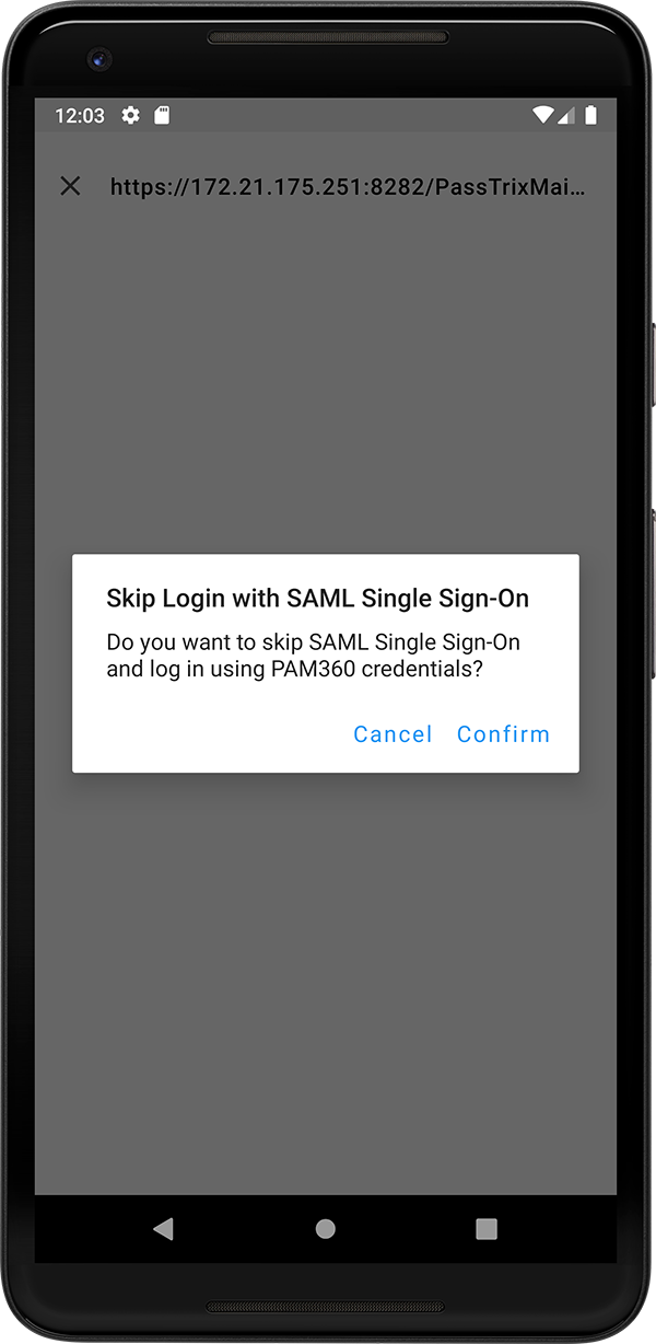 - ログインするには、PAM360アカウントのユーザー名とパスワードを入力します。Androidアプリケーションは、3つの認証方法yをサポートしています:PAM360のネイティブ認証からログイン、Active Directory/LDAP/Azure AD認証から、およびSAML SSO経由のログイン。Active Directory/LDAP認証情報を使ってログインするには、ドメイン名をドロップダウンリストから選択します。SAMLシングルサインオンがPAM360 Serverで有効になっている場合、ブラウザウインドウはアプリケーション内で開きます。