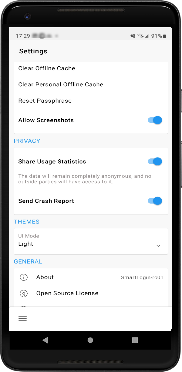 - アプリケーションをオンラインモードで使用し、許可された回数で正しいパスフレーズを入力しなかった場合、アプリケーションからログアウトされ、モバイルアプリケーションに再アクセスするには、もう一度ログインと新しいパスフレーズのセットアップが必要になります。