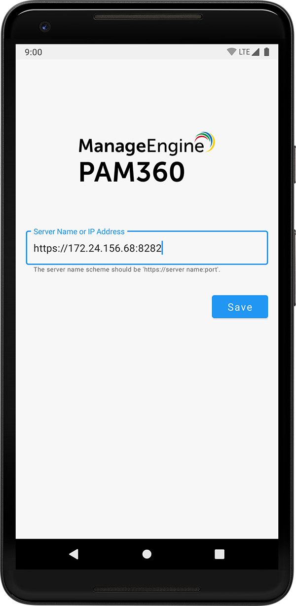 - PAM360が実行されているサーバー名またはIPアドレスを、ポートとあわせて入力します。PAM360 Serverが物理ネットワークにインストールされている場合、PAM360 Serverとモバイルアプリケーションが同じネットワークに接続されていることを確認します。ただし、PAM360 Serverがクラウドでホスティングされている場合、お使いのモバイルアプリケーションも別のネットワークから作動します。