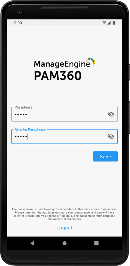 メモ:PAM360 Androidアプリケーションには、ManageEngine PAM360 Webアプリケーションの有効なインスタンスも必要です。