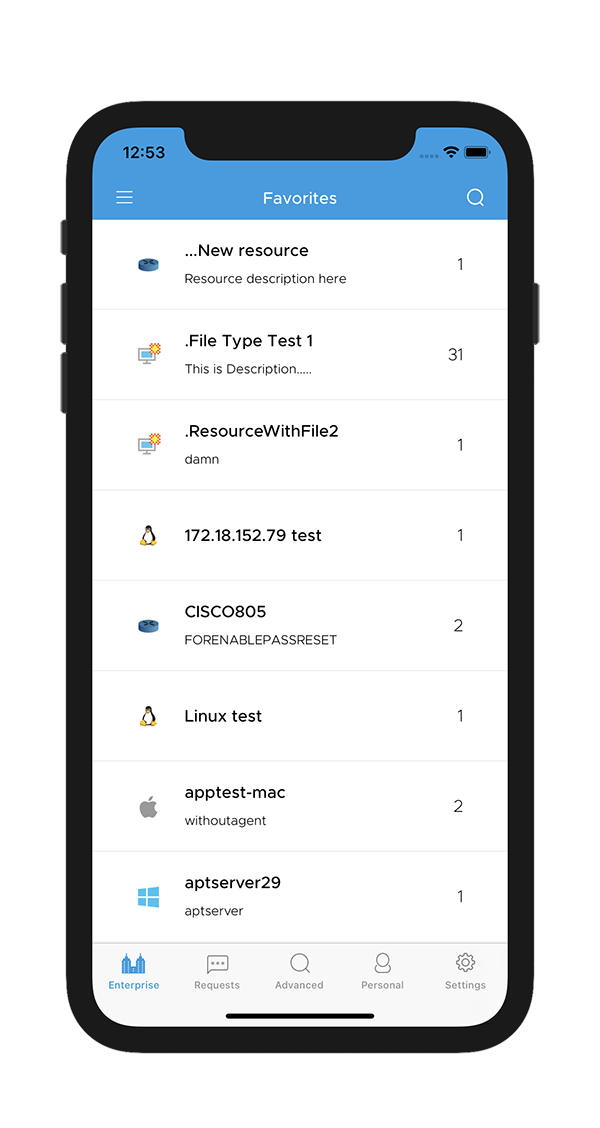 PAM360のiOSアプリケーションには、デスクトップインストールから離れているときも、特権アカウントを管理dけいる全包括的な機能が付いています。