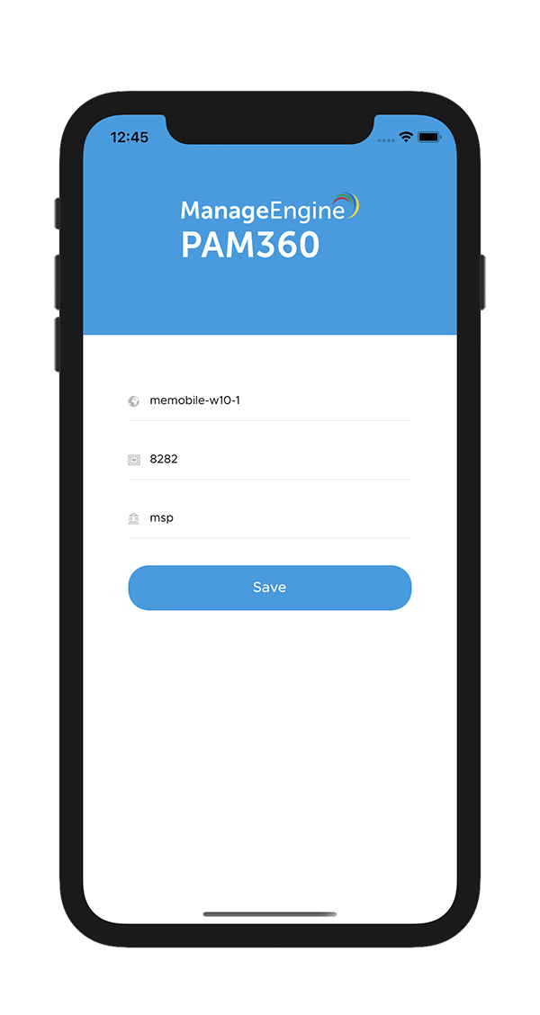 - PAM360が実行されているサーバー名またはIPアドレスを、ポートとあわせて入力します。PAM360 Serverが物理ネットワークにインストールされている場合、PAM360 Serverとモバイルアプリケーションが同じネットワークに接続されていることを確認します。ただし、PAM360 Serverがクラウドでホスティングされている場合、お使いのモバイルアプリケーションも別のネットワークから作動します。