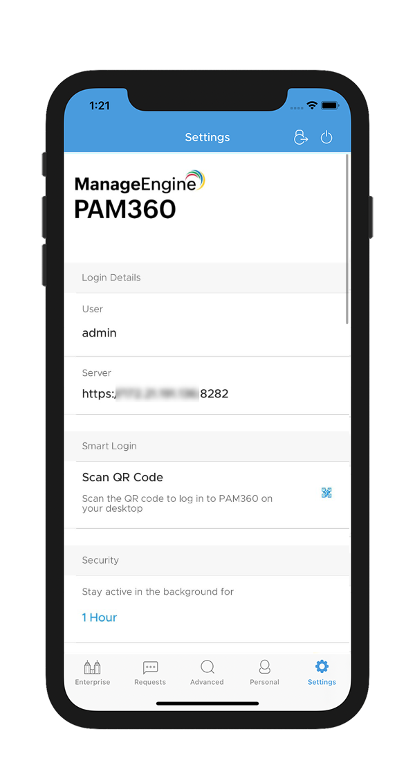 メモ:PAM360 iOSアプリケーションには、ManageEngine PAM360 Webアプリケーションの有効なインスタンスも必要です。