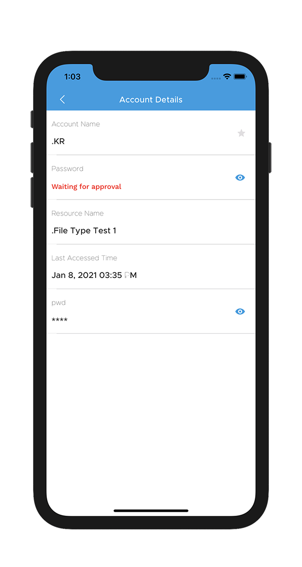 パスワードアクセス要求を送信するには、アカウント詳細セクションで、[要求]オプションをタップします。要求が通過したら、ステータスは承認待ちに変更されます。
