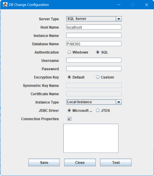 - インスタンス名:PAM360で使用するSQLサーバーの名前付きインスタンスを指定します。インスタンス名が指定されていない場合、PAM360はポート 1433でデフォルトのインスタンスとの接続を確立しようとします。