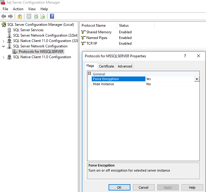 自己署名証明書を作成して使用するには、SQLサーバーがインストールされているマシンで次の手順を実行します: