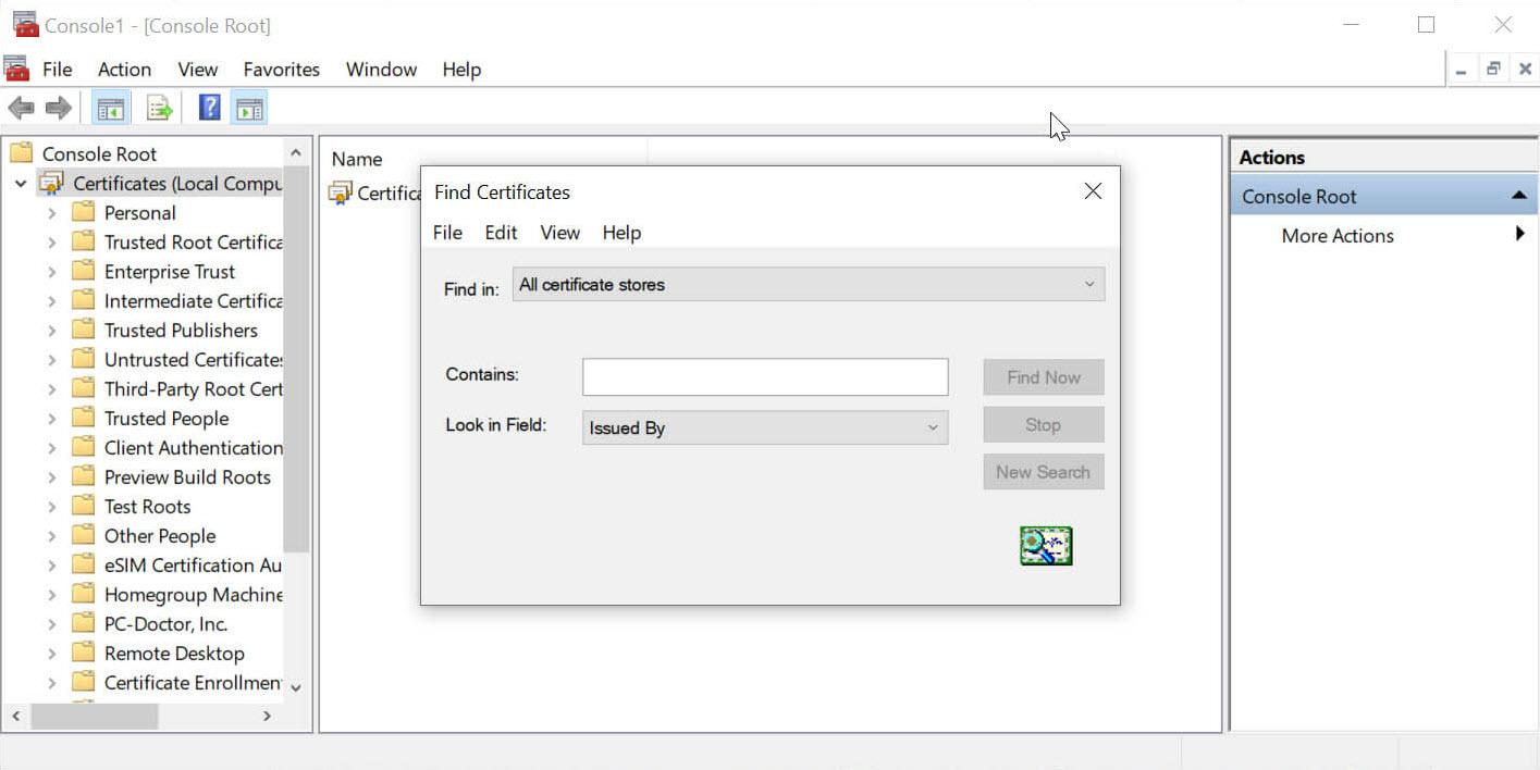 - [証明書(ローカルコンピューター)] >> [個人] >> [証明書]を選択します。