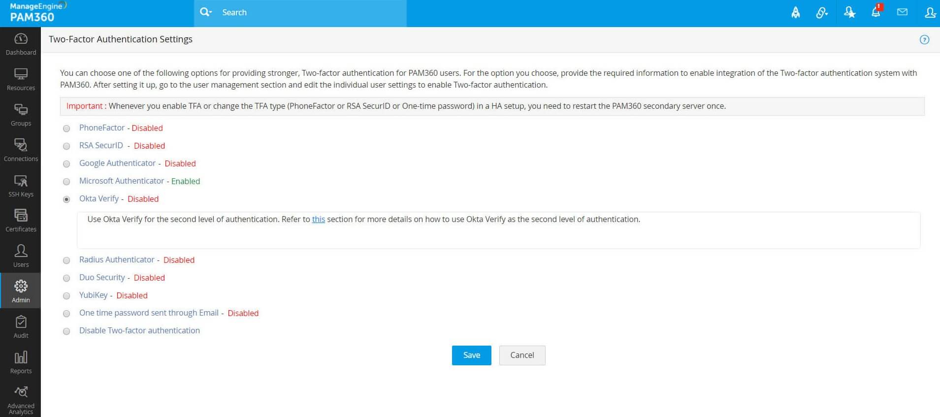 - TFAがOkta Verify経由で有効なときPAM360 Webインターフェイスにどのように接続しますか?