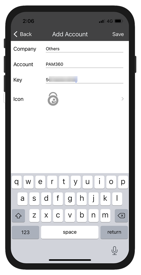 - 次に、お使いのデバイスをPAM360 GUIに表示されるQRコードに当て、QRコードをスキャンしてアカウントを追加します。これで、Oracle Authenticatorが自動的に構成され、PAM360への認証コードの生成を開始します。