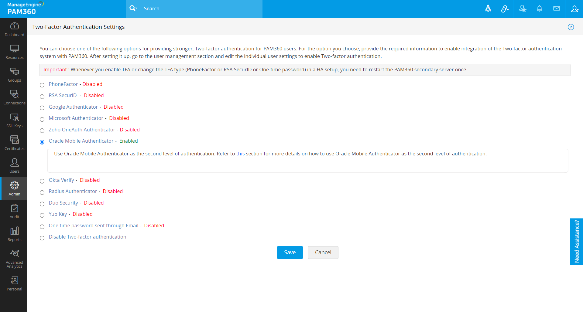 - Oracle AuthenticatorでTFA有効時のPAM360 Webインターフェイスへの接続