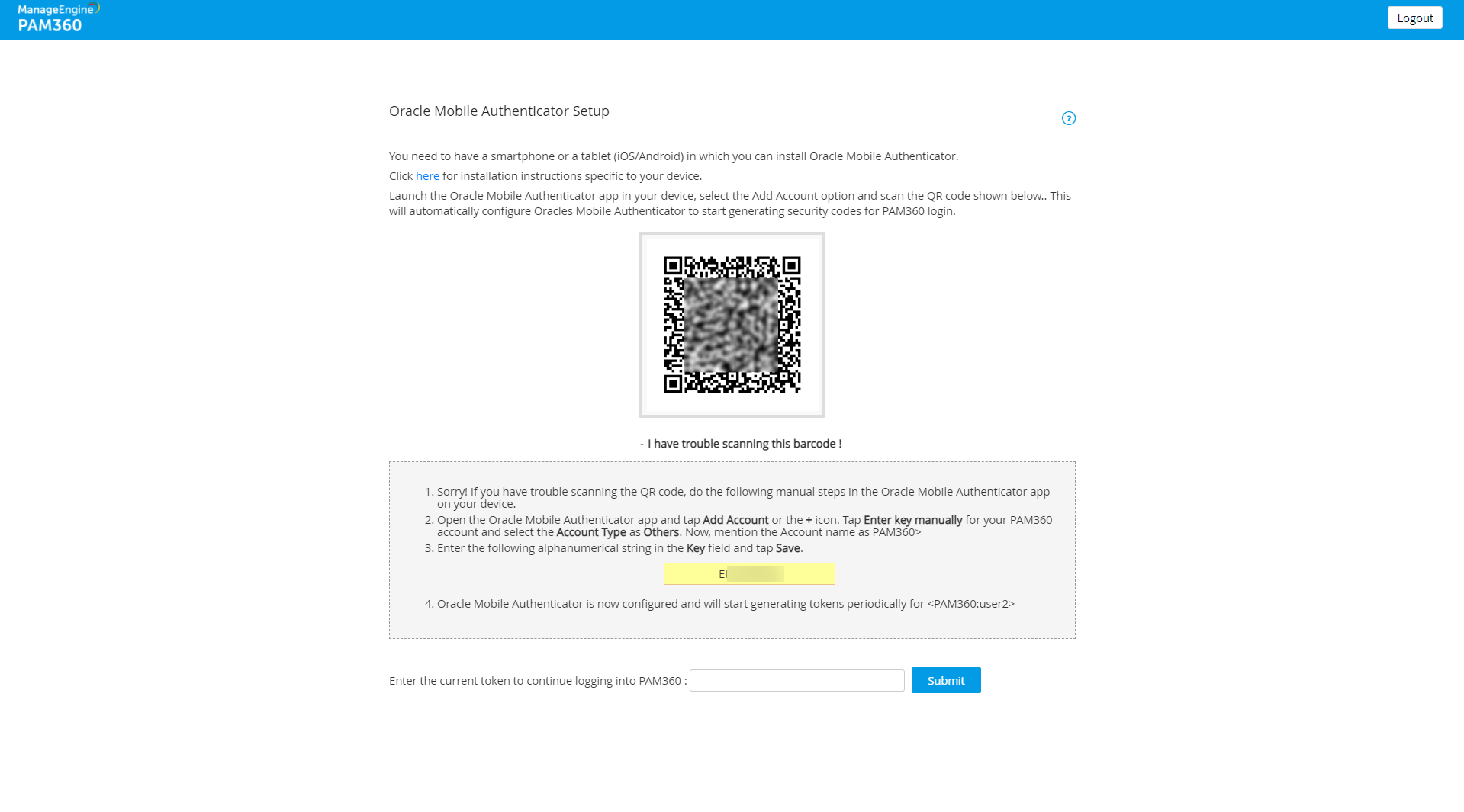 - PAM360は、構成されたOracle Authenticatorから第二要素認証を求めます