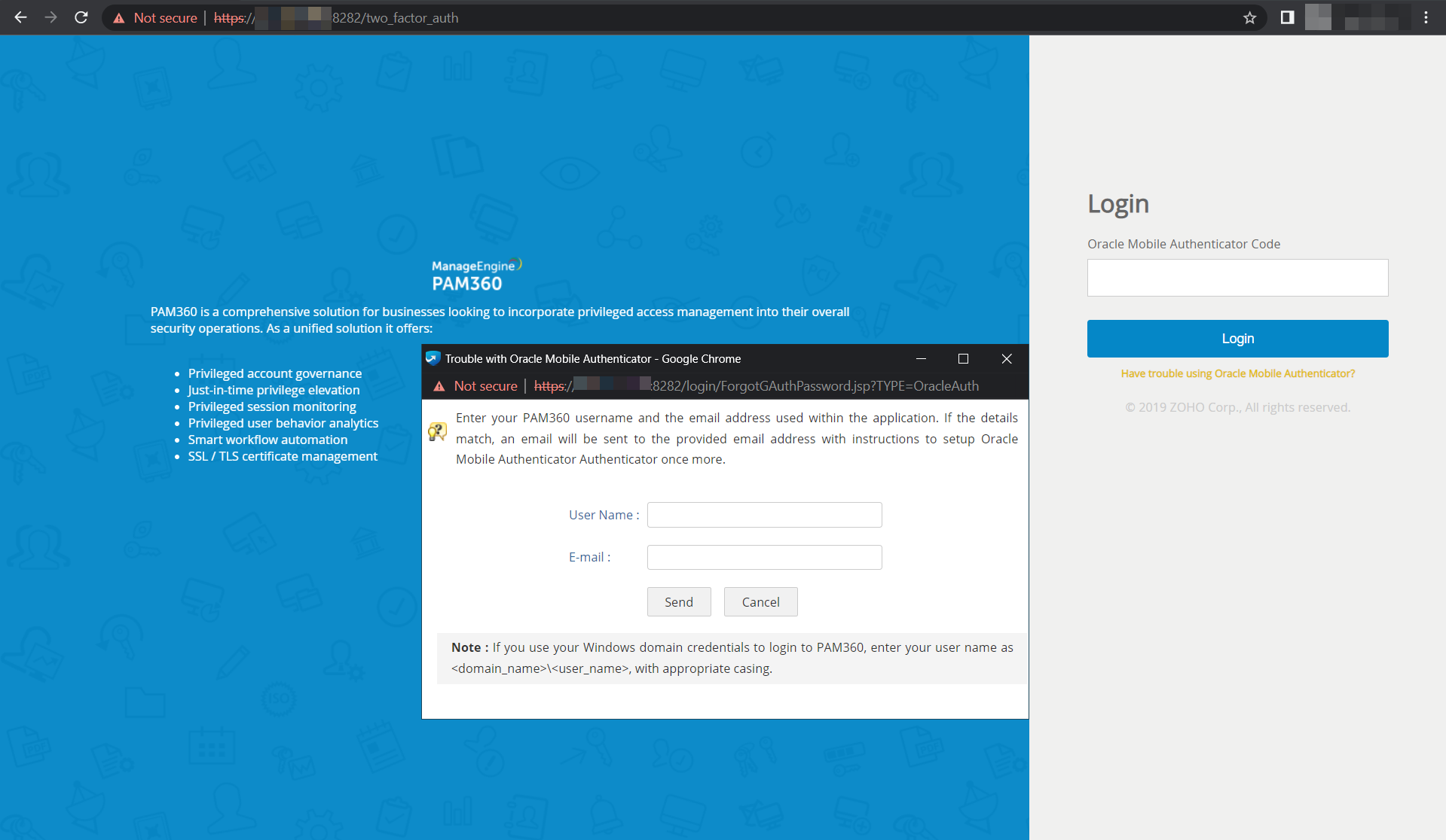 - PAM360ログイン画面のリンクOracle Authenticatorで問題がありますか?をクリックするだけです。