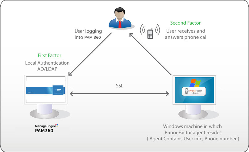 ManageEngineは、電話機ベースのTFAの大手グルーバルパートナーであるPhoneFactorとの連携により、PAM360に簡単で効果的な二要素セキュリティを可能にしました。ManageEngine は PhoneFactor Alliance パートナーであり、PhoneFactor の認証サービスとのシームレスな統合を提供します。