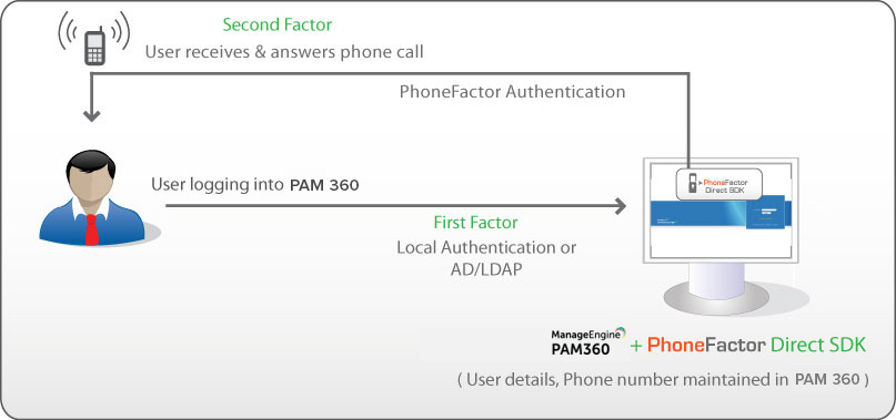 エージェントを使用する代わりに、PhoneFactor Direct SDKを使用することもできます。これは、PAM360との統合に使用でき、PAM360の既存のユーザーデータベースを利用します。