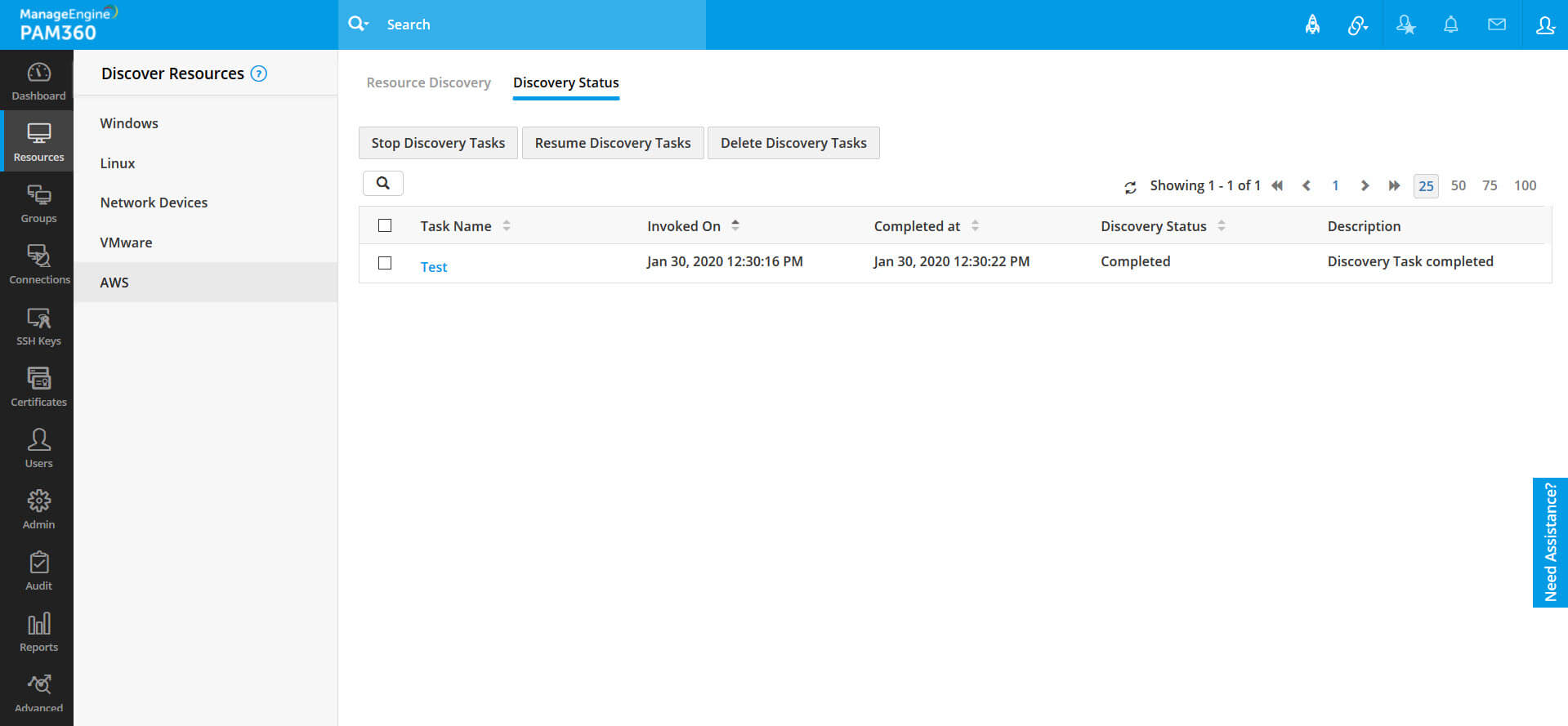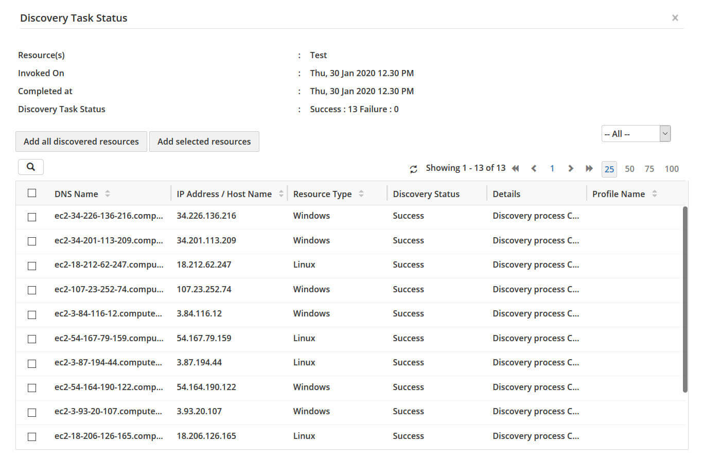- リソースが正常に検出されると、すべて/選択したリソースをPAM360に追加することができます。