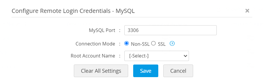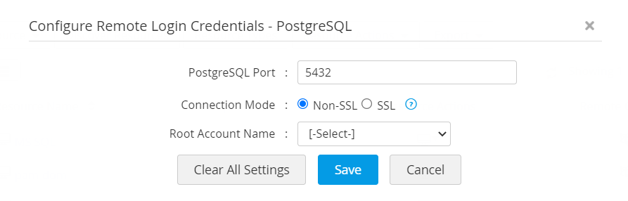 - SSL モードまたは非 SSL モードのいずれかを介して接続を構成できます。SSLモードの場合、SSL証明書をPAM360でアカウントを検出する前に、インポートする必要があります。