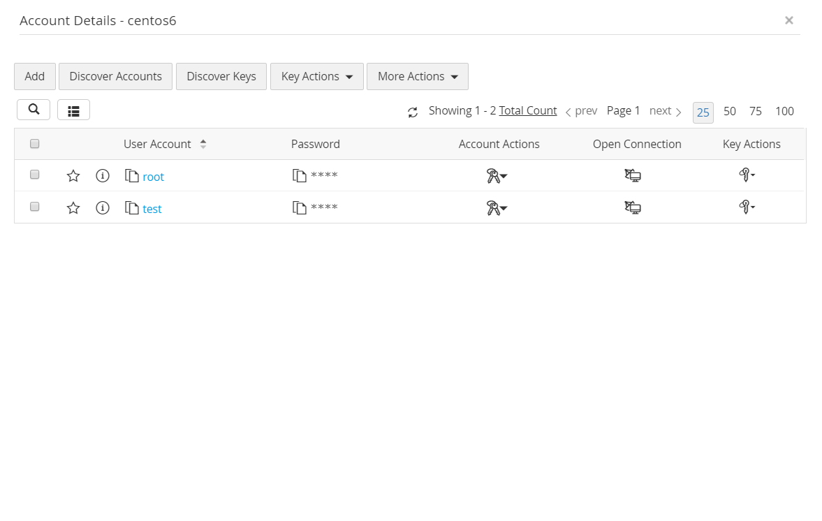 IT 資産の検出に成功したら、次の手順は、それらの IT 資産に関連づけられた特権アカウントを検出することです。各リソースに関連づけられた特権アカウントを個別に、または一括で検出できます。