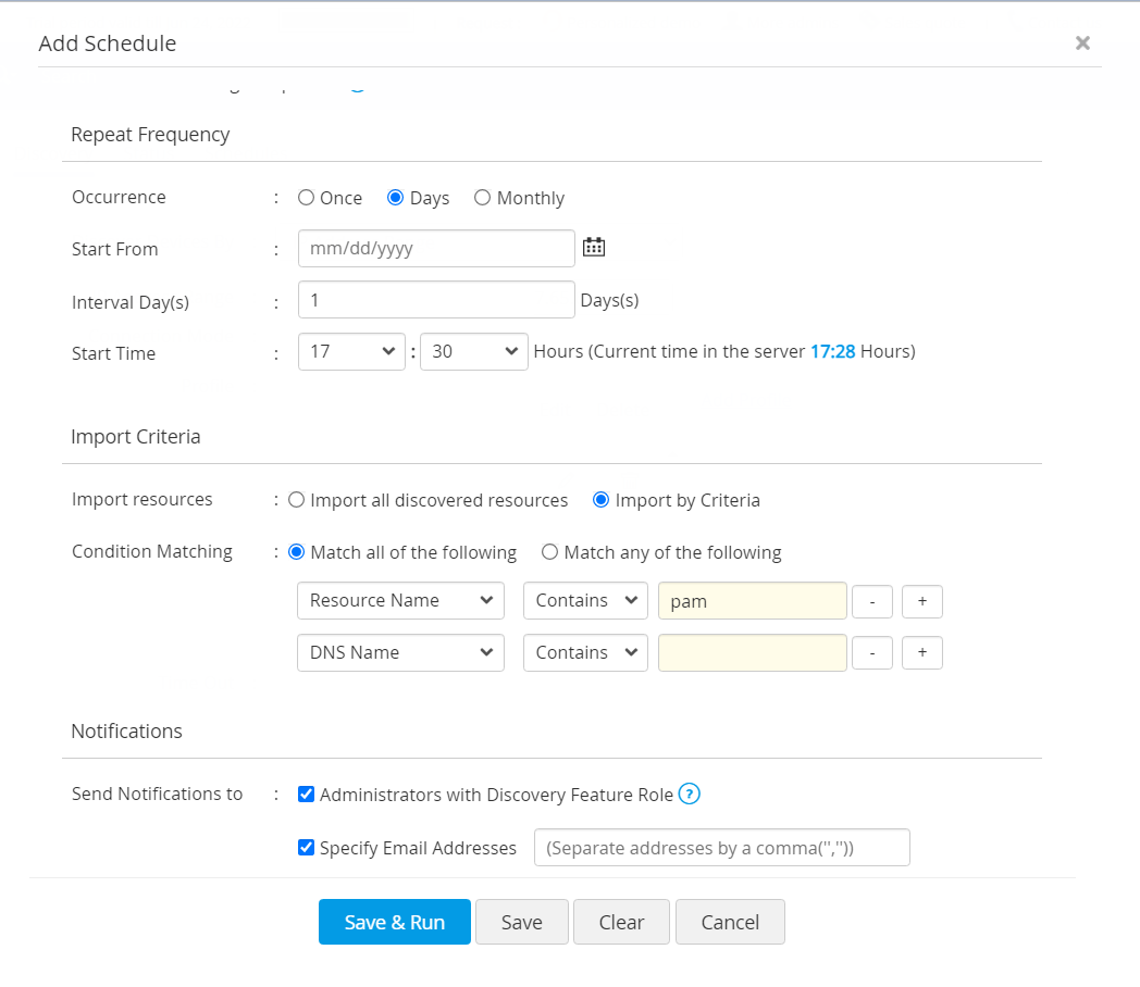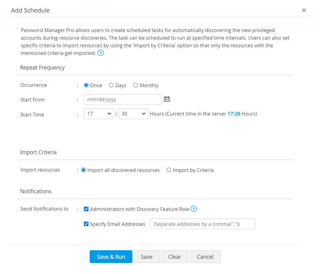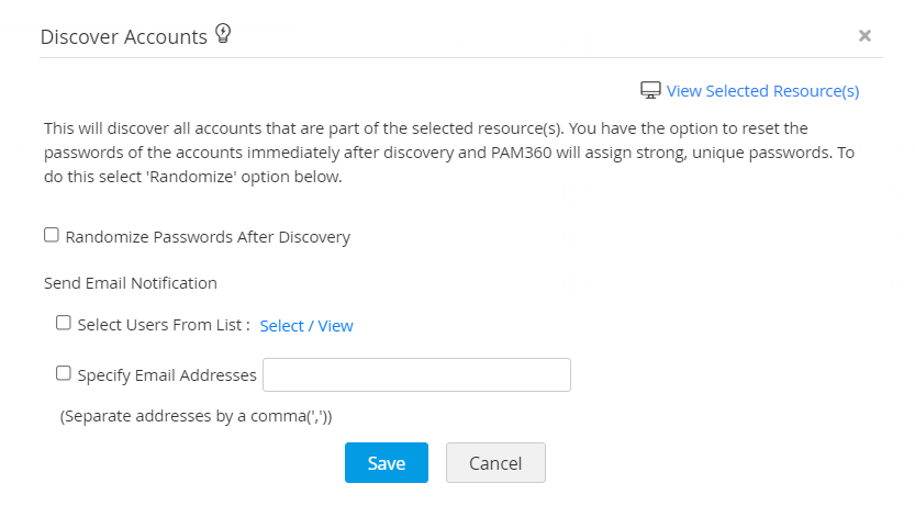 - PAM360には、アカウント検出プロセスが完了したら、既存のディスカバリ:PAM360ユーザーまたは指定メールIDに通知するオプションもあります。