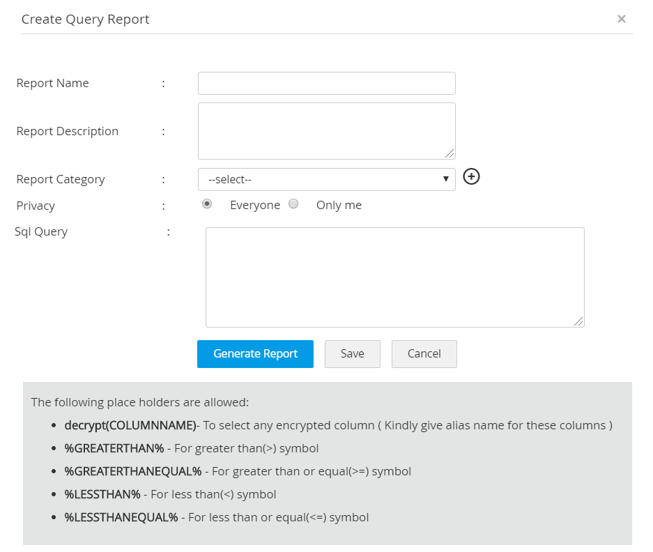 個別クエリレポートを作成し、各自の作成SQLのクエリを書き込むか、このカテゴリおn既存のレポートからSQLクエリをカスタマイズして、別データをPAM360データベースから取得できます。