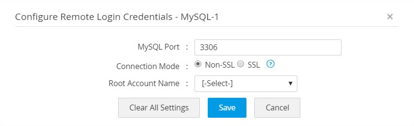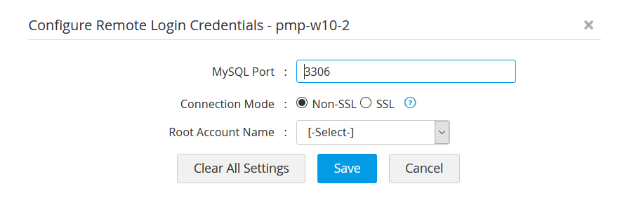 MySQL/PostgreSQL サーバーのパスワードのリセットは JDBC 経由で行われるため、MySQL/PostgreSQL 管理者の認証情報が必要です。MySQL/PostgreSQL サーバーのパスワードのリモート リセットを有効にするには、次の手順に従ってください: