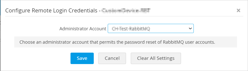 - 管理者アカウントドロップダウンから、RabbitMQユーザーアカウントのパスワードリセットを許可する必要なRabbitMQ管理者アカウントを選択します。