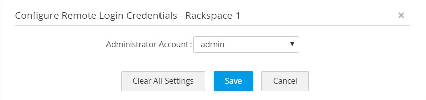 - パスワードリセットを実行するには、[リソース] >> [リソース操作] >> [リモートパスワードリセットを構成]の順に移動します。ここでは、Rackspace 管理者の認証情報が必要であり、管理者アカウントとして選択する必要があります。