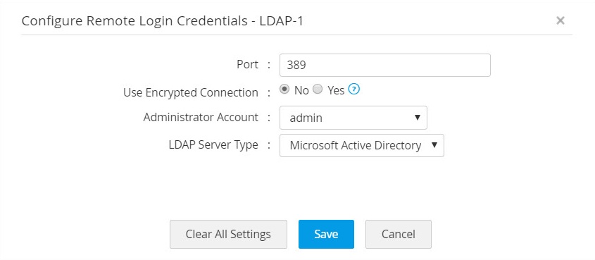 注記:選択した LDAP サーバーが Microsoft Active Directory である場合、接続は SSL のみを介して行われる必要があります。
